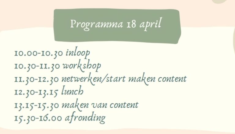 - workshop waar je handvaten krijgt om aan de slag te gaan met het maken van content